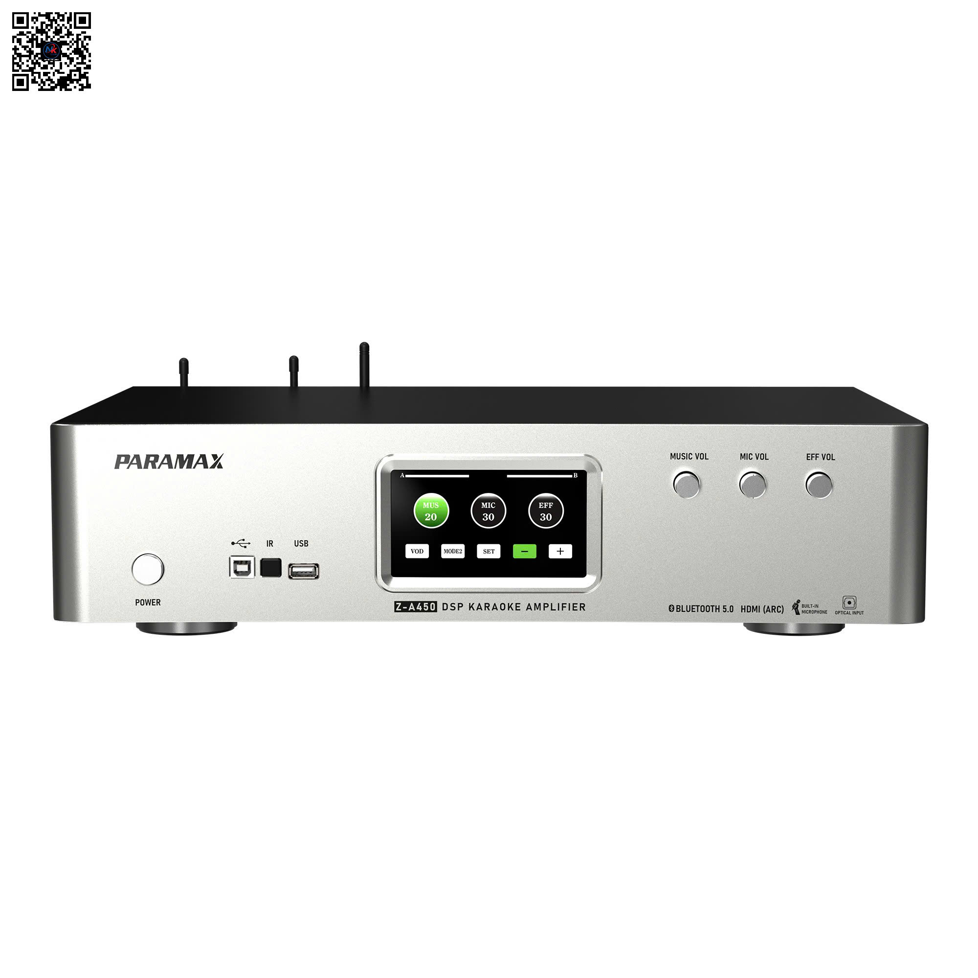 PARAMAX Z-A450 là dòng amply karaoke cao cấp All-In-One tích hợp Amply + Mixer số DSP + Micro không dây UHF, mang đến giải pháp âm thanh gọn – mạnh – chuyên nghiệp cho mọi không gian từ gia đình đến kinh doanh.
