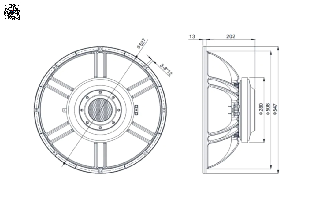 SPLmax 21FW153-8 sử dụng màng sợi carbon kết hợp coil sandwich 6 inch, giúp tối ưu hiệu suất và độ bền, đáp ứng tốt các hệ thống âm thanh yêu cầu cường độ cao.