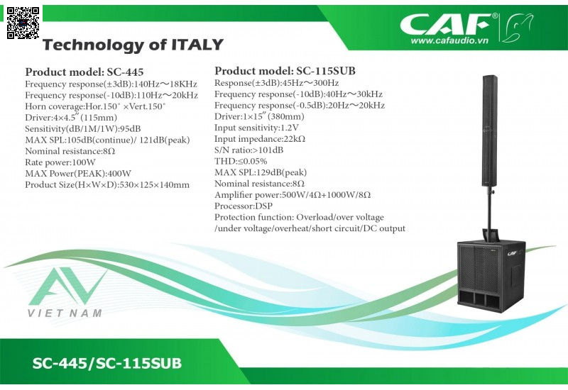 CAF SC-445 / SC-115SUB là giải pháp âm thanh hoàn hảo cho những ai cần một hệ thống loa column nhỏ gọn nhưng công suất mạnh mẽ.