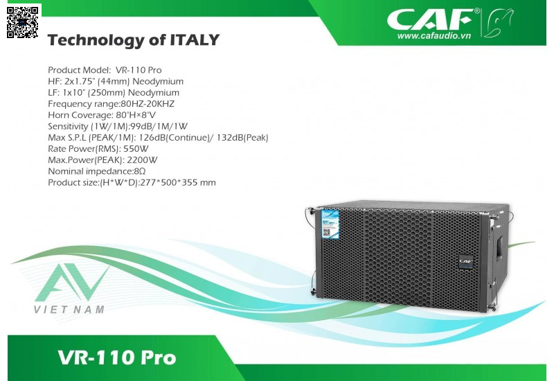 CAF VR-110 Pro là lựa chọn lý tưởng cho những ai cần một hệ thống loa line array nhỏ gọn nhưng công suất lớn và hiệu suất cao.