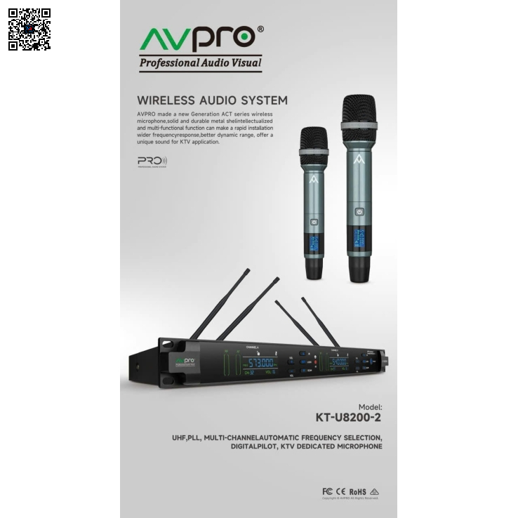 Micro Không Dây AVPRO KT-U8200 là dòng micro karaoke chuyên nghiệp được thiết kế dành cho các hệ thống karaoke gia đình, karaoke kinh doanh, hội trường và sân khấu biểu diễn. Sản phẩm sử dụng công nghệ truyền dẫn UHF hiện đại, giúp đảm bảo tín hiệu ổn định, âm thanh trung thực và hạn chế nhiễu sóng.