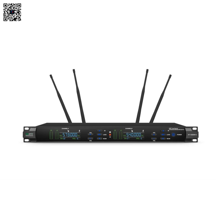 🎧 Với thiết kế vỏ kim loại chắc chắn, màn hình LED hiển thị rõ ràng và hệ thống dò tần số tự động, AVPRO KT-U8200 mang lại trải nghiệm sử dụng tiện lợi, giúp người dùng dễ dàng theo dõi trạng thái hoạt động của micro.