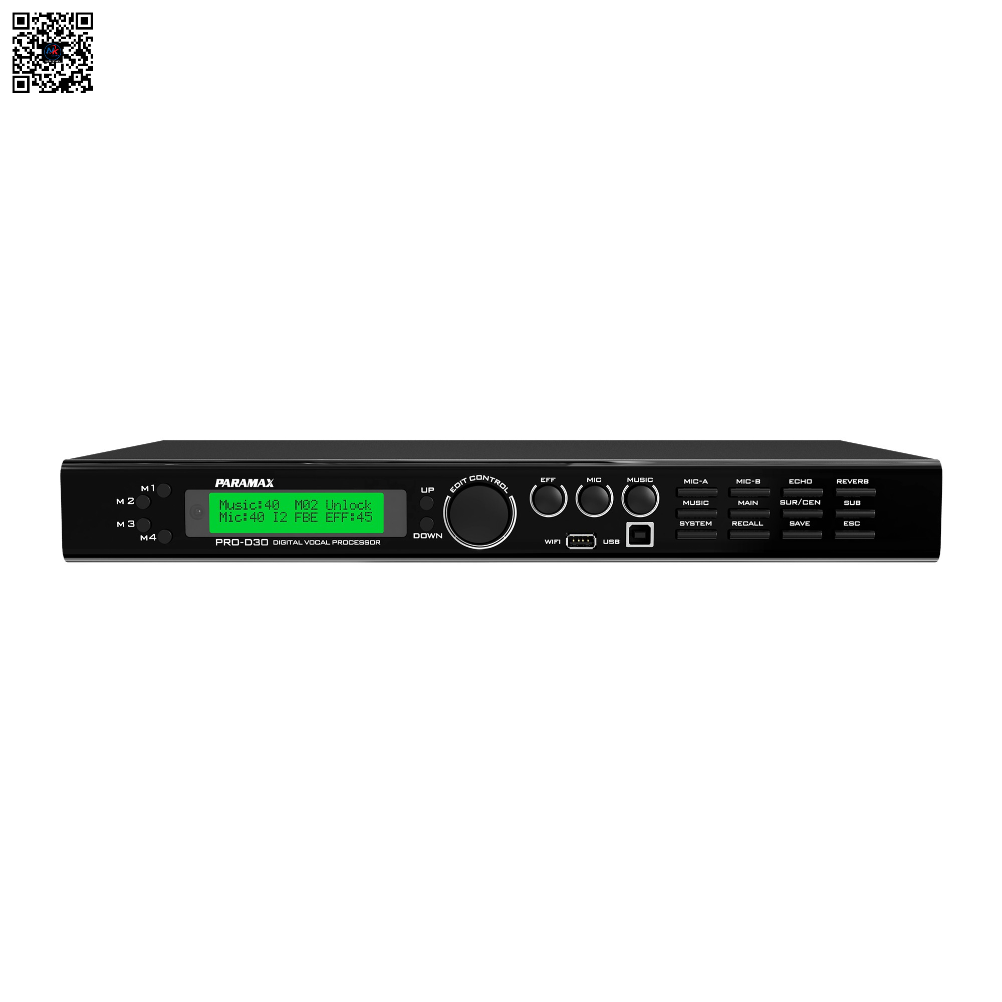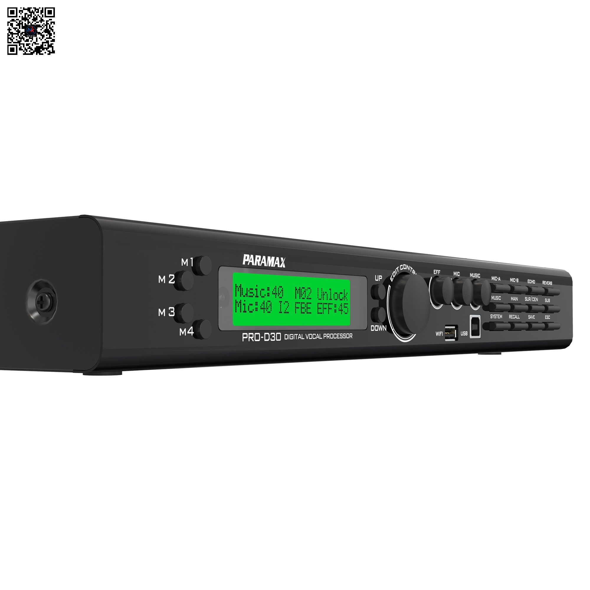 PARAMAX PRO-D30 là vang số karaoke cao cấp (mixer số) được thiết kế dành cho hệ thống âm thanh chuyên nghiệp như karaoke kinh doanh, sân khấu và dàn nghe nhạc cao cấp. Sản phẩm sử dụng chipset Analog Devices và bộ giải mã ESS Technology (Mỹ), mang lại khả năng xử lý tín hiệu nhanh, chính xác và chất âm trung thực.